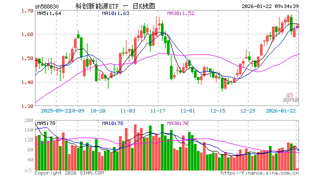 1月22日,科创新能源ETF(588830)开盘涨0.25%,报1.623元。科创新能源ETF(588830)重仓股方面,晶科能源开盘跌0.36%,阿特斯涨0.12%,天合光能涨0.29%,容百科技跌0.57%,大全能源涨0.16%,厦钨新能涨0.36%,嘉元科技涨1.56%,天奈科技涨0.31%,孚能科技跌0.06%,固德威涨1.28%。