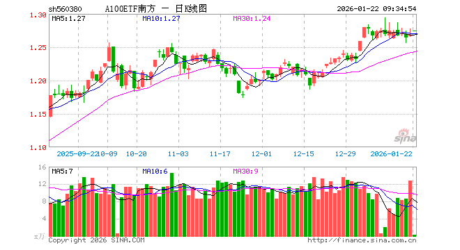 A100ETF南方(560380)业绩比较基准为中证A100指数收益率,管理人为南方基金管理股份有限公司,基金经理为龚涛,成立(2024-12-19)以来回报为26.94%,近一个月回报为4.76%。