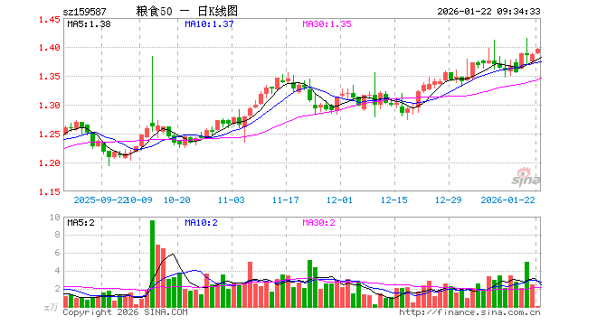 1月22日,粮食ETF广发(159587)开盘涨0.14%,报1.388元。粮食ETF广发(159587)重仓股方面,大北农开盘涨0.00%,隆平高科涨0.21%,北大荒涨0.00%,荃银高科涨0.11%,藏格矿业跌0.01%,盐湖股份涨0.89%,苏垦农发涨0.11%,亚盛集团涨0.56%,农发种业跌0.60%,云天化涨0.63%。