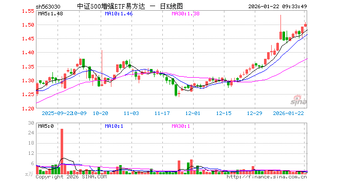 1月22日,中证500增强ETF易方达(563030)开盘涨0.00%,报1.491元。中证500增强ETF易方达(563030)重仓股方面,胜宏科技开盘涨1.31%,先导智能涨0.14%,巨人网络跌0.02%,瑞芯微涨1.53%,长川科技涨0.94%,赤峰黄金跌4.01%,科达利涨0.01%,深信服涨1.39%,九号公司涨0.39%,华工科技涨0.90%。