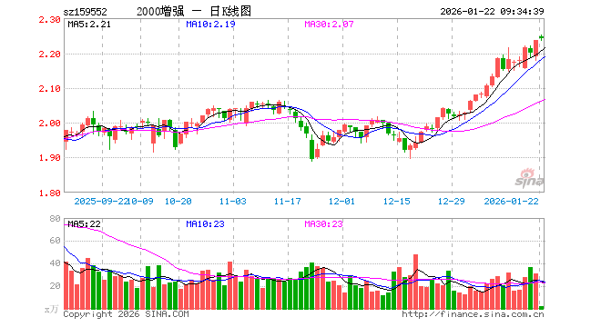 1月22日,中证2000增强ETF(159552)开盘涨0.49%,报2.247元。中证2000增强ETF(159552)重仓股方面,春秋电子开盘涨0.25%,亚太股份跌0.06%,新亚电子涨0.47%,豪鹏科技跌0.08%,新日股份涨0.00%,海利得涨0.73%,苏博特跌2.74%,永茂泰涨0.00%,久祺股份涨0.17%,理邦仪器涨0.26%。