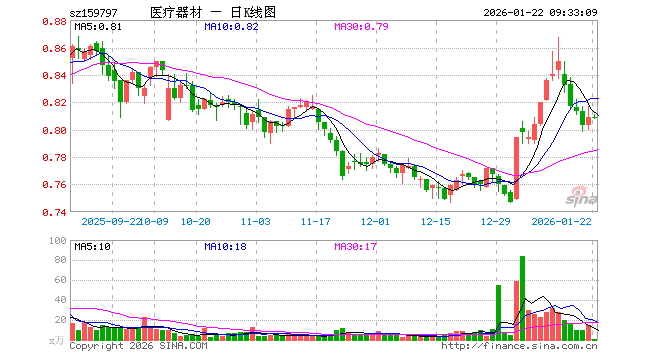 1月22日,医疗器械ETF基金(159797)开盘涨0.00%,报0.809元。医疗器械ETF基金(159797)重仓股方面,迈瑞医疗开盘涨0.28%,联影医疗涨0.00%,惠泰医疗跌0.01%,爱美客跌0.15%,新产业涨0.33%,鱼跃医疗涨0.12%,乐普医疗涨0.05%,福瑞股份涨0.00%,英科医疗涨0.43%,山东药玻涨0.29%。