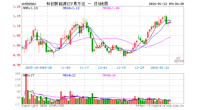 科创新能源ETF易方达(589960)业绩比较基准为上证科创板新能源指数收益率,管理人为易方达基金管理有限公司,基金经理为李博扬,成立(2025-09-10)以来回报为11.48%,近一个月回报为15.87%。