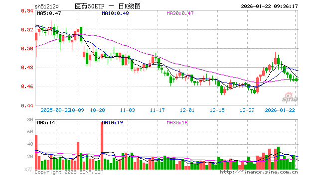 医药50ETF(512120)业绩比较基准为中证细分医药产业主题指数收益率,管理人为华安基金管理有限公司,基金经理为苏卿云,成立(2013-12-04)以来回报为39.65%,近一个月回报为0.47%。