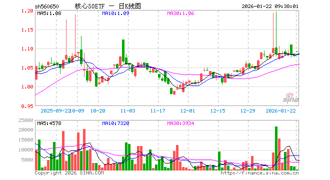 1月22日,核心50ETF(560650)开盘涨1.11%,报1.092元。核心50ETF(560650)重仓股方面,东方财富开盘涨0.00%,恒瑞医药涨0.43%,阳光电源涨0.49%,迈瑞医疗涨0.28%,豪威集团涨0.67%,万华化学涨1.30%,福耀玻璃涨0.41%,天孚通信跌0.02%,同花顺涨0.38%,思源电气涨0.01%。