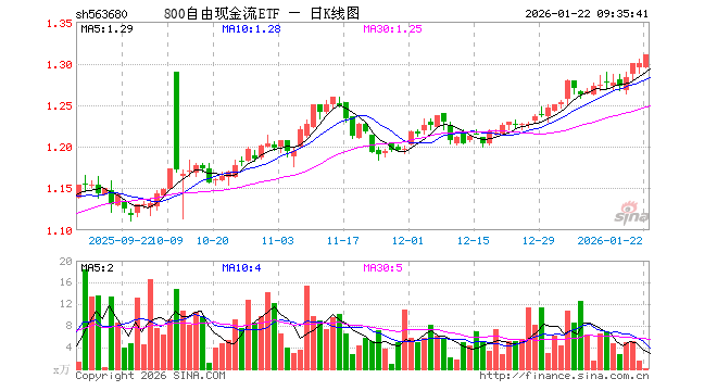 800自由现金流ETF(563680)业绩比较基准为中证800自由现金流指数收益率,管理人为汇添富基金管理股份有限公司,基金经理为何丽竹,成立(2025-04-30)以来回报为30.30%,近一个月回报为6.31%。