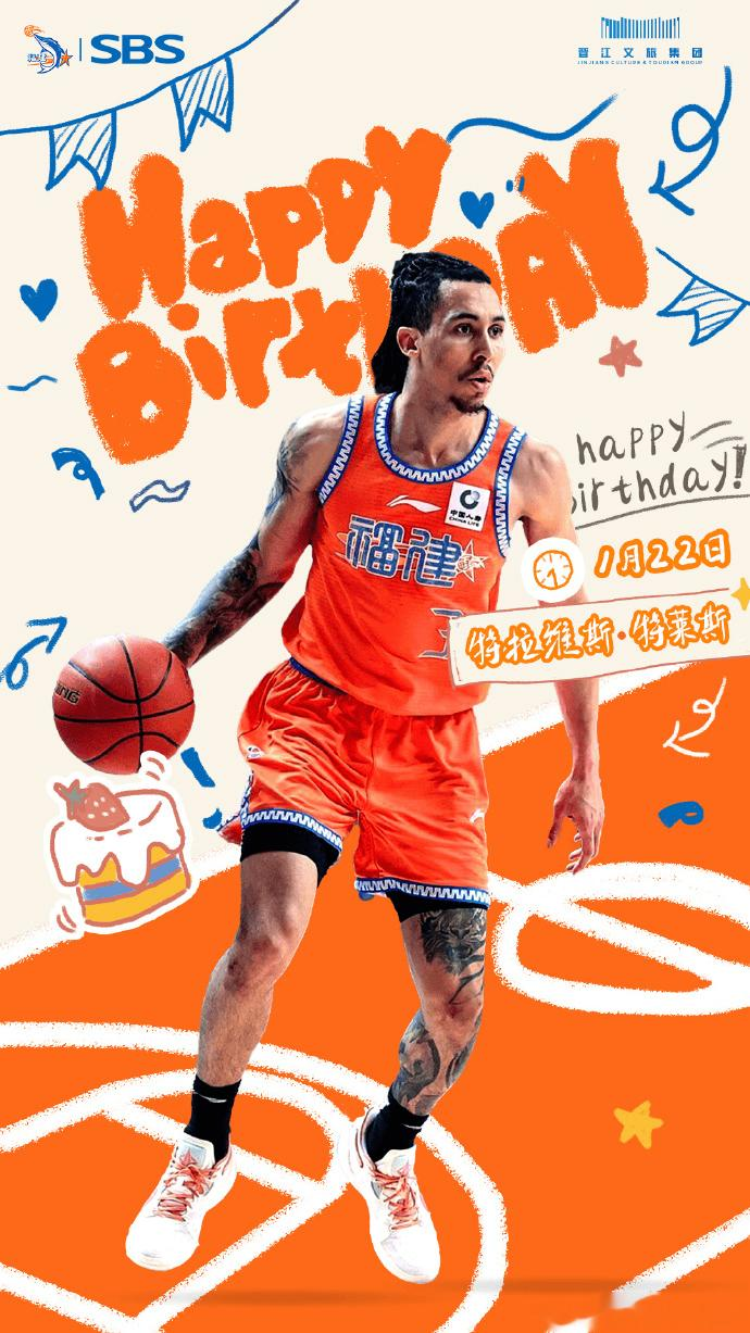 虎扑01月22日讯福建男篮官方分享生日海报:祝特拉维斯·特莱斯生日快乐。