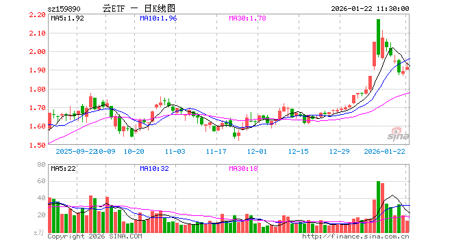 1月22日,截止午间收盘,云计算ETF(159890)涨1.27%,报1.915元,成交额2610.42万元。云计算ETF(159890)重仓股方面,科大讯飞截止午盘涨0.34%,金山办公涨3.04%,中际旭创涨1.11%,新易盛跌0.14%,浪潮信息跌1.15%,中科曙光跌1.57%,紫光股份跌0.45%,恒生电子涨0.06%,润泽科技涨2.94%,拓维信息涨0.09%。