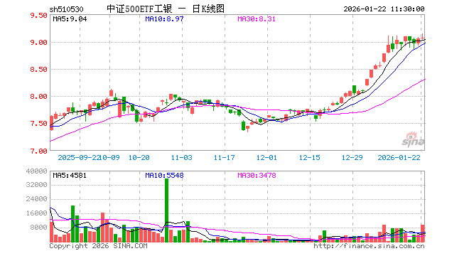 1月22日,截止午间收盘,中证500ETF工银(510530)涨0.13%,报9.066元,成交额864.01万元。中证500ETF工银(510530)重仓股方面,胜宏科技截止午盘涨1.84%,华工科技跌1.44%,先导智能跌2.39%,巨人网络跌2.88%,芯原股份跌0.12%,指南针跌0.47%,欣旺达跌0.98%,润和软件涨0.65%,永泰能源涨1.22%,卧龙电驱跌0.76%。