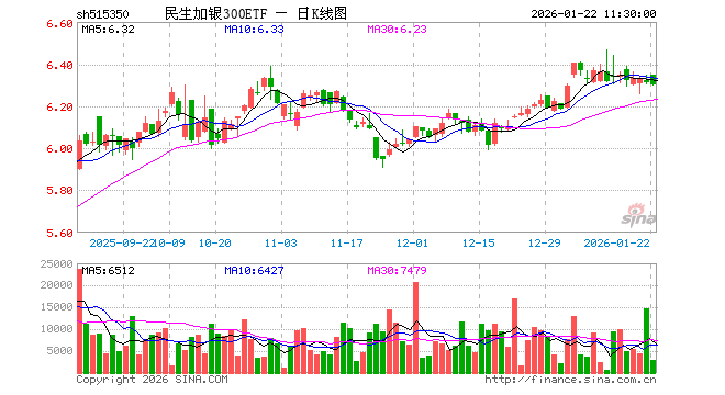 1月22日,截止午间收盘,民生加银300ETF(515350)跌0.11%,报6.303元,成交额184.10万元。民生加银300ETF(515350)重仓股方面,宁德时代截止午盘跌2.80%,贵州茅台跌0.30%,中国平安跌1.47%,招商银行跌0.94%,紫金矿业跌2.31%,寒武纪跌0.24%,新易盛跌0.14%,中际旭创涨1.11%,美的集团跌0.03%,东方财富跌0.13%。