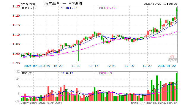1月22日,截止午间收盘,石油天然气ETF(159588)涨2.61%,报1.221元,成交额3690.65万元。石油天然气ETF(159588)重仓股方面,中国石油截止午盘涨1.30%,中国石化涨3.36%,中国海油涨4.48%,杰瑞股份跌0.20%,广汇能源涨1.75%,招商轮船涨0.18%,中远海能涨0.62%,新奥股份涨2.24%,海油工程涨2.68%,大众公用涨2.14%。