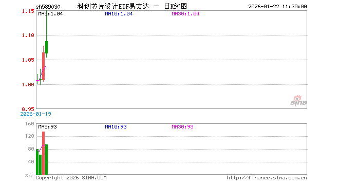 科创芯片设计ETF易方达(589030)业绩比较基准为上证科创板芯片设计主题指数收益率,管理人为易方达基金管理有限公司,基金经理为李栩,成立(2025-12-31)以来回报为6.08%。