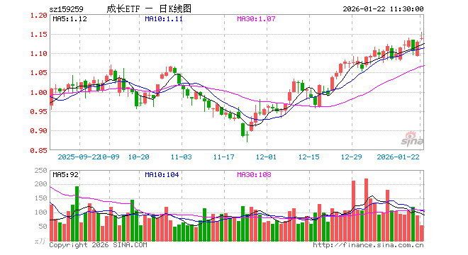 1月22日,截止午间收盘,成长ETF易方达(159259)涨0.89%,报1.138元,成交额6090.50万元。成长ETF易方达(159259)重仓股方面,北方稀土截止午盘跌0.02%,指南针跌0.47%,澜起科技涨3.90%,思特威跌1.16%,生益科技涨3.12%,仕佳光子跌1.11%,深信服涨10.21%,东阳光跌1.50%,亚钾国际涨2.05%,生益电子涨3.04%。