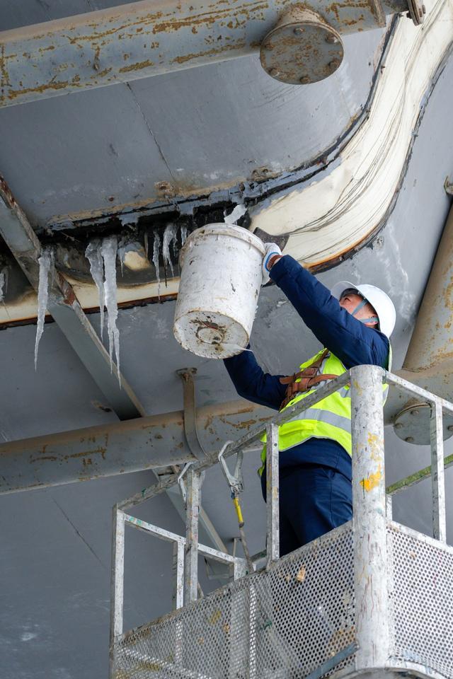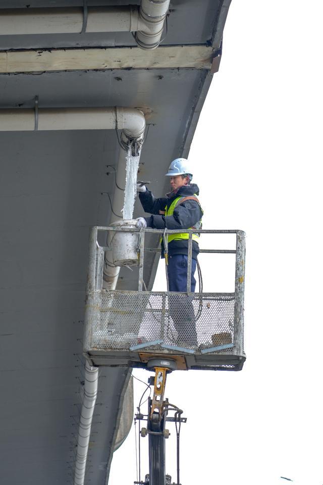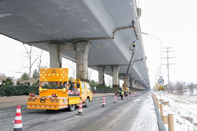 据了解,针对高架桥桥下冰凌情况,自19日凌晨,市城市道路桥隧事务中心组织相关桥隧管养单位出动巡查人员604人次,车辆178台次,采取“车辆巡查+人工检查”“重点盯防+全面覆盖”相结合的方式,对桥梁易结冰部位实施动态巡查。管养人员顶风冒雪,高效协作,采用登高车、伸缩除冰杆、伸缩抄网等设备,完成了长江二桥汉口岸黄浦立交、岳家嘴立交、航空路立交、武胜路高架、汉口站地下通道等桥隧1033处冰凌清除作业,及时消除了悬冰坠落对道路交通和行人安全的潜在威胁。不少路过市民表示:“看到有工作人员在桥下除冰,感觉心里踏实多了,不然这些‘冰溜子’掉下来蛮危险的。”