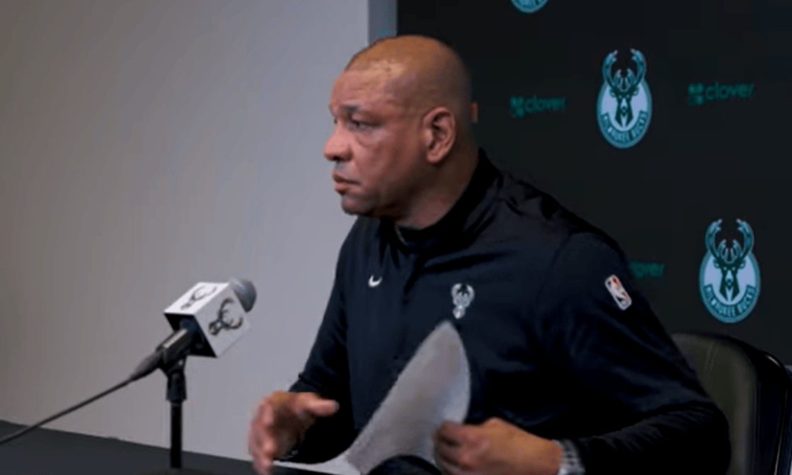 里弗斯:是的,我们知道。我是说,尤其是考虑到扬尼斯的出场时间限制。当我们有两个那样的球员缺阵,加上扬尼斯有时间限制,你不能给自己挖个大坑。这是赛前就有的想法。我唯一的念头就是我们决不能早早落后。因为如果你早早落后,现在你就不得不把扬尼斯换下场。而这只会让分差继续扩大,结果正是如此。你知道我们甚至讨论过在第一节就把他的时间用光,我认为那会是个糟糕的错误,但见鬼,结果也不可能更糟了。
