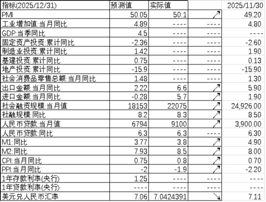 上周,国内发布12月进出口及社融数据。其中,出口金额同比由11月的5.9%进一步上行至6.6%,显示我国出口维持较强韧性。社融数据方面,虽然总量有所走弱,但人民币贷款同比增速维持6.3%,出现了一定的企稳迹象。往后看,近期中美贸易摩擦有所缓和,但逆全球化趋势仍在持续。内需方面,随着地产政策继续放松,同时生育补贴有所加码,对经济增速能够形成一定支撑,海外不确定性较大背景下经济基本面预计将出现一定的震荡回升。海外方面,12月CPI同比增长2.7%,增速与11月持平,继续维持温和回落状态。降息预期方面,CPI走平背景下降息预期变化不大,目前中性预期26年1月降息的概率维持4%。