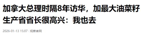 加拿大:已接到中方订单   加拿大农业部长满面笑容地宣布收到中方首批农产品订单,清单里有油菜籽和牛肉,还说这是共赢的好事。   这两年加拿大农业可是遭了不少罪。2024年的时候,前政府跟着美国跑,对中国的电动汽车加征100%关税,钢铝产品也加征25%关税,把中加关系搞得很僵。   中方不可能坐视不管,当年8月就对加拿大油菜籽采取临时反倾销措施,征收75.8%的保证金,后来还延长了反倾销调查期限。这一下,加拿大农民可就惨了。   油菜籽是加拿大的重要作物,年种植面积超过2100万英亩,而萨斯喀彻温省又是加拿大最大的油菜籽产区,2024年这里产了980多万吨油菜籽,占了全国总产量的55%。   更关键的是,中国一直是这个省最大的出口市场,2024年全省67%的油菜籽都销往中国。关税一加上,油菜籽卖不出去,当地农民损失惨重,有个农场主光这一项就亏了45万加元,其他种植户也都面临同样的困境。那段时间,萨斯喀彻温省的省长多次带着经贸团访华,就盼着能重启合作。   转机出在2026年1月,加拿大总理卡尼时隔8年访华,这趟行程算是把双方的经贸关系拉回了正轨。访问期间,两国签了《中国—加拿大经贸合作路线图》,还就不少经贸分歧达成了初步安排。   核心就是互相让步、务实合作:加方取消了对华电动汽车的高额附加税,给了每年4.9万辆的配额,配额内只收6.1%的最惠国关税,以后还会逐年增加配额;中方也相应调整,恢复加拿大油菜籽和牛肉的进口,这才有了这次的首批订单。   可能有人会问,咱们自己不种油菜、不养牛吗?为啥还要从加拿大进口?这就涉及到实际需求了。现在咱们国人的饮食结构变了,不再只是吃粮吃菜,对肉、油这些的需求越来越大,膳食结构朝着多元型转变。但国内的生产能力有限,像油菜籽、牛肉这些产品,确实存在供给缺口。   就说油菜籽,它是菜籽油的主要原料,菜籽油占咱们食用植物油消费的24%,仅次于大豆油。国内生产的油菜籽不够用,需要进口来补充,才能保证市场上食用油供应稳定、价格不暴涨。   牛肉也是一样,这些年咱们进口量一直在涨,2019年到2024年从166万吨涨到287万吨,增幅超过70%。   虽然之前进口牛肉对国内养殖业有冲击,商务部也出台了保障措施,但合理的进口能丰富市场选择,满足大家对高品质蛋白质的需求。   加拿大的优势正好能补上咱们的缺口。萨斯喀彻温省的油菜籽产量大、品质稳定,艾伯塔省的牛肉产业也是优势产业,能持续稳定供应。这次中方采购,既满足了国内市场的需求,也给加拿大农民送来了“暖流”,这才是真正的共赢,不是单方面的恩惠。   更值得一提的是,加拿大这次算是看清了形势,不再盲目跟着美国跑。之前跟着美国搞对华遏制,没捞到好处,反而坑了自己的农民。现在不一样了,卡尼总理访华后,在达沃斯论坛上公开批评美国霸权,还明确说加拿大要摆脱对美国的依赖,靠贸易多元化实现自主。   面对美国的威胁,他也没退缩,这份底气,很大程度上就来自和中国的合作。   要知道,中国是全球最大的油菜籽进口国,重启中国市场,对加拿大来说意味着每年近50亿加元的出口收益回来了,不仅稳住了农业根基,还带动了相关产业发展。而且除了农产品,两国在能源、新材料、清洁能源等领域还有很大合作空间,这些都能给加拿大经济注入动力。   反观美国,看到加拿大和中国走近,心里肯定不舒服,但也没辙。加拿大已经明白,跟着美国搞对抗只会损害自己的利益,只有基于自身利益,和中国开展务实合作,才是正确的选择。这次中方订单的落地,就是最好的证明。   当然,这只是中加经贸合作的新起点。两国已经约定,把经贸联委会升格为部长级机制,还规划了8个领域的28条合作举措,从农业到绿色贸易,再到电子商务,合作范围会越来越广。   接下来只要双方都遵守约定,落实好各项成果,管控好分歧,就能实现持续的互利共赢。   国家之间的贸易合作,讲究的就是互相需要、互相尊重。加拿大放下偏见,不再追随美国的错误步伐,主动和中国务实合作,才换来的这份订单。   这也给其他国家提了个醒,跟着别人搞对抗没有出路,只有立足自身利益,开展平等合作,才能走得长远。咱们中方也始终愿意和各国合作,只要对方有诚意、讲务实,咱们就不怕没有共赢的空间。