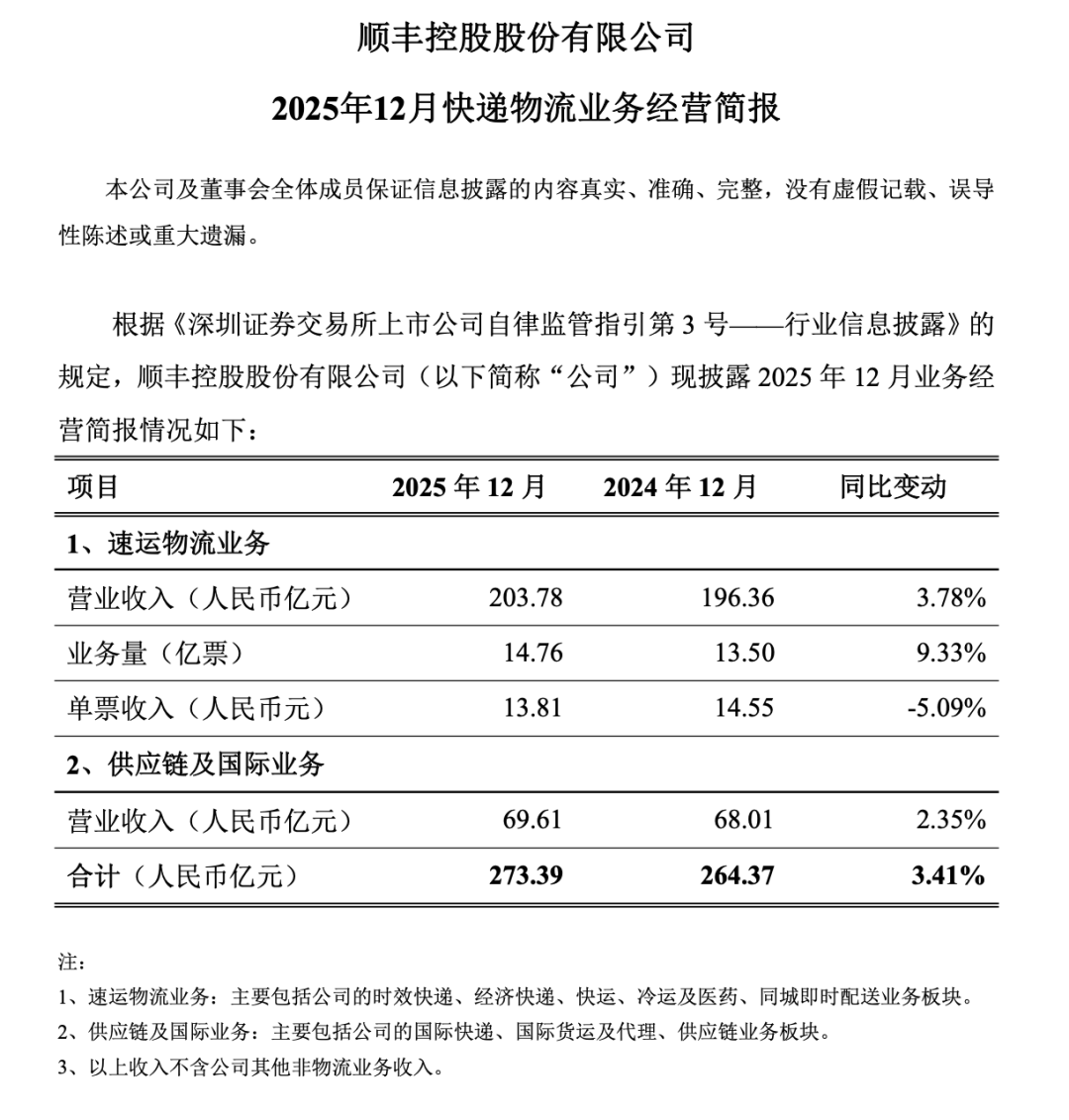 但好的消息时,顺丰供应链及国际业务在去年7-10月经历负增长之后,11-12月终于恢复正增长。