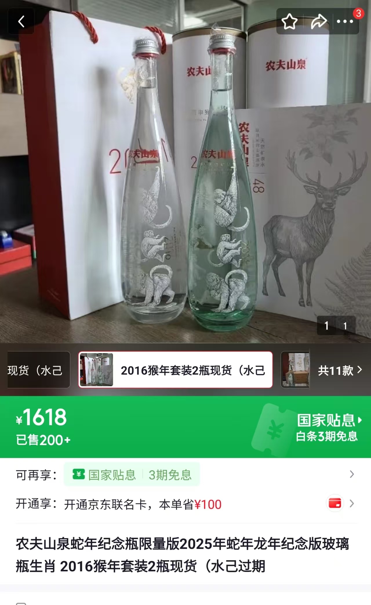 2024年时,便有媒体报道过农夫山泉生肖水价格被炒高,其中猴年版每套价格甚至接近2000元。