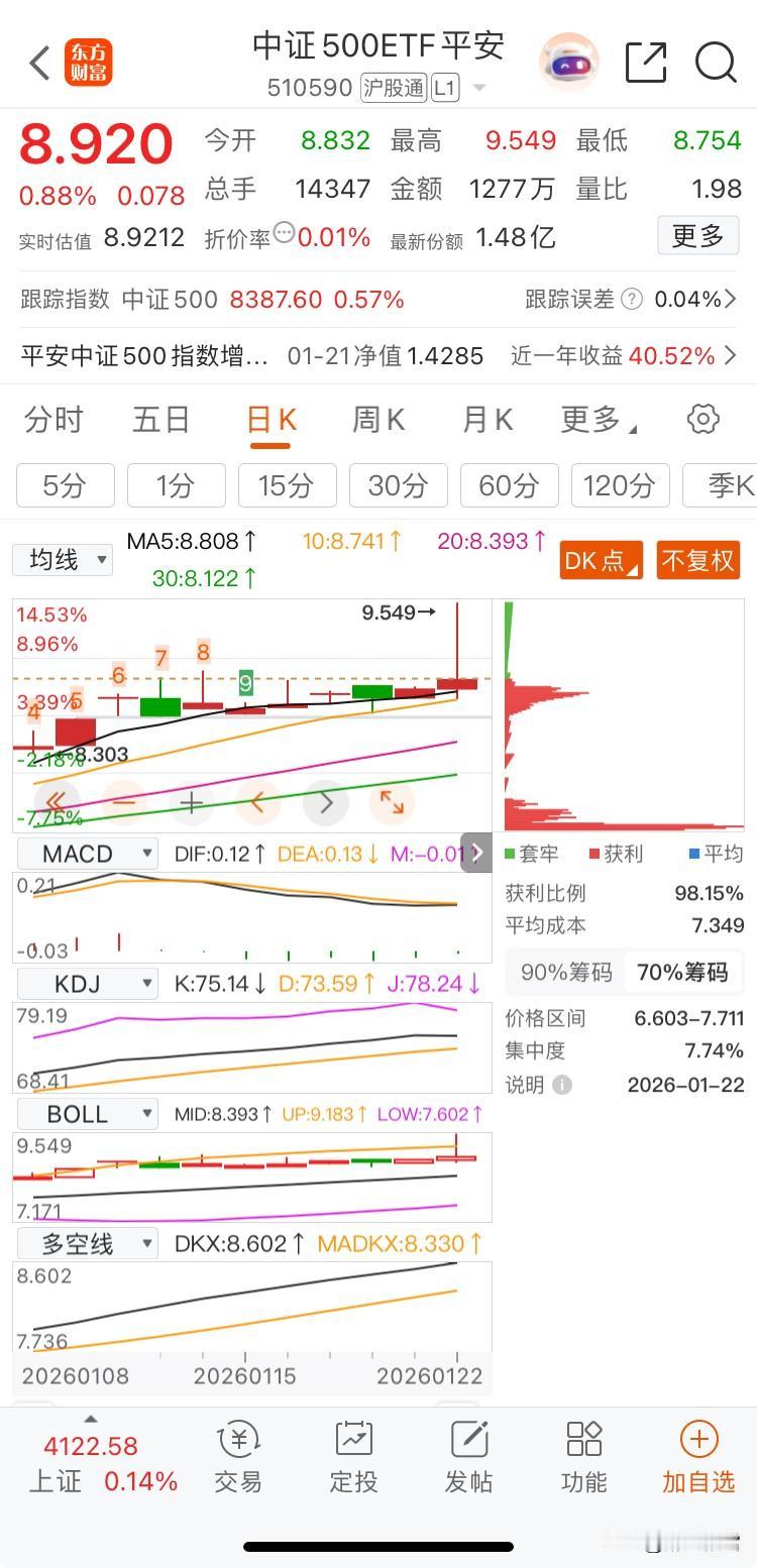 1月22日收盘 一、盘面回顾 市场情绪高涨,上涨家数3577家,涨停92家,下跌1777家。 板块轮动。今天商业航天迭加军工、机器人前排,人工智能、芯片延续!商业航天以25家涨停领涨,带动多板块联动。 商业板块2760-2845是主力筹码区,昨天触碰反弹,下周一多个龙头解除监管,可跟踪二波机会(不追高,目前没有企稳)! 三市成交额27166亿,放量,机构净流入473.21亿主导行情,主力、大小散户跑路,存在分歧。机构主导行情,具备较强的中期支撑。 二、明日沪指走势预判 1、沪深300震荡整理,沪指没有企稳,明天沪指继续震荡整理! 2、科创50 →科创板假阴线上涨,但缩量,量价背离,没有真正企稳! 3、中小板→中证500连续2阳,且今天放量,量价齐一,企稳! 4、沪指10:30放量,午后反弹 小结: 1)大趋势:向上不改,仅节奏变化。依据:10、20、30、60多头依旧。 2)沪指震荡整理,沪指明天惯性高开概率大→回落→震荡反弹,明天走势复制粘贴今天走势! 3)指数仅控仓,重心概念个股