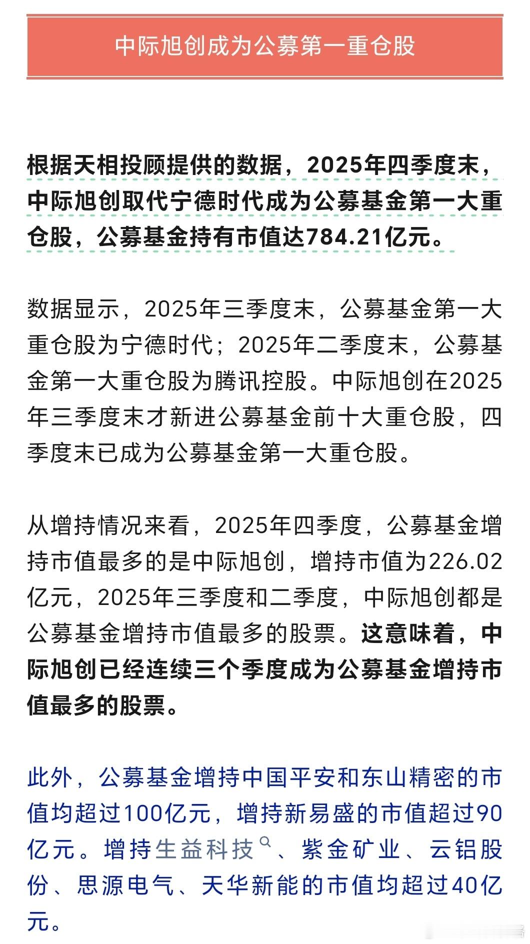中际旭创成公募第一抱团股