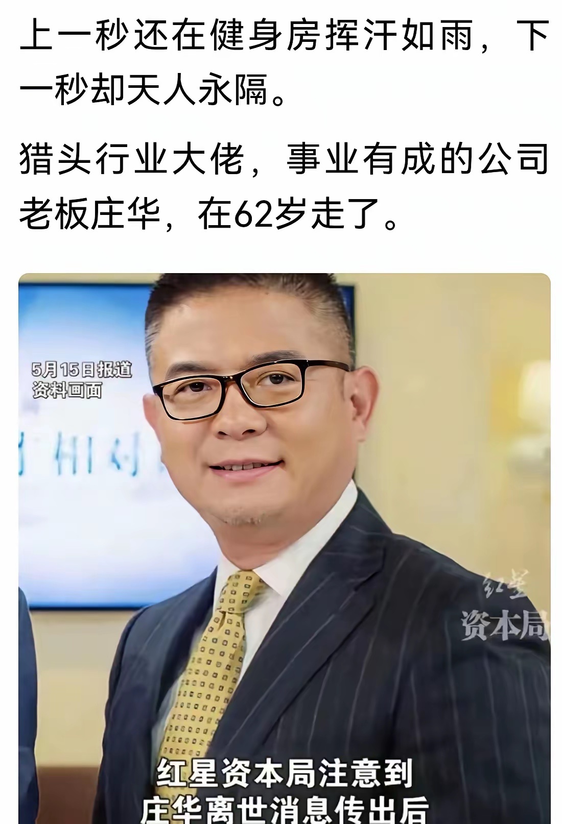 又一富豪运动猝死。运动猝死的人越来越多,生命究竟在于运动还是在于静止?运动猝死的人包括名人,为什么越来越多?一曰过犹不及,二曰没有中医常识。现代人生活节奏快,工作压力大,尤其是名人、企业老板,他们的身体其实已经在高负荷运转了,却又选择了高负荷的锻炼方式,看似是为了健康,孰不知是在一步一步逼近五脏六腑尤其是心脏的极限!冬主收藏,冬天是不适合大运动量锻炼的。三九天在健身房里挥汗如雨,十几度甚至只有度的天气跑马拉松,无不是在透支生命。《内经》云:年过40气阴自半。35岁后的女人,40岁后的男人,就都𣎴适合大运动锻炼了!因为,你的五脏六腑功能已经全面衰退,它们所能提供给你的气血能量,满足你日常的工作生活已经开始力不从心了!这个阶段再做大运动量锻炼,无异于竭泽而渔,寅吃卯粮。当然,如果每天龟缩不动,出门就坐车(驾车),上班坐办公室,回家坐沙发,整天都不动,身体也容易出问题!生命不在于运动,也不在于静止,关键是要根据自己的年龄和节气,选择适合自己的适度的运动。