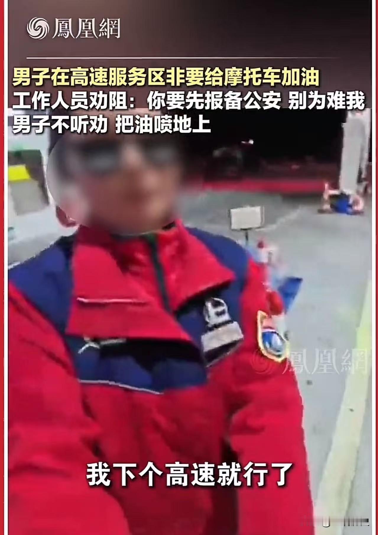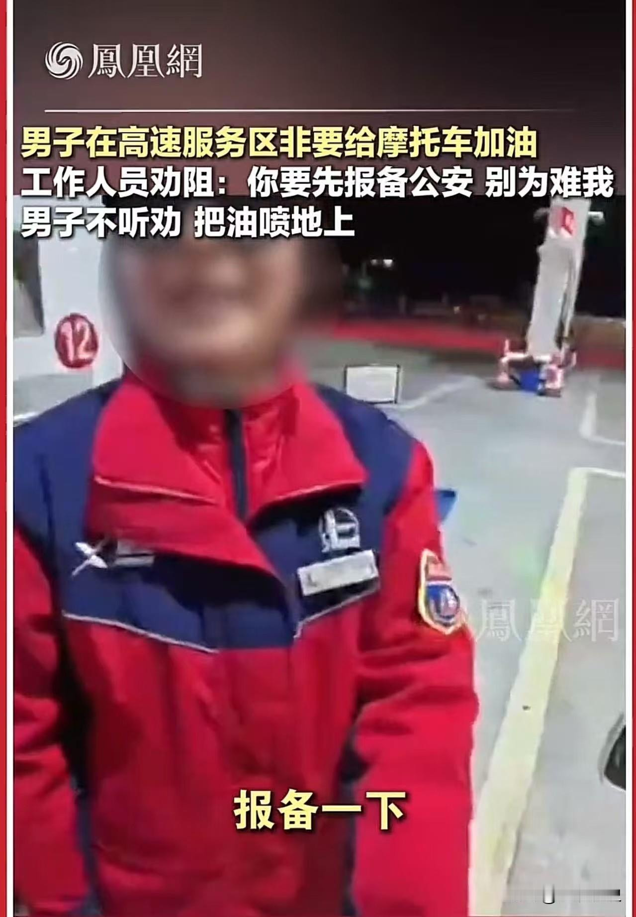 男子在高速服务区非要给摩托车加油,加油员劝阻:“你要先报备公安,别为难我!”可是男子不听劝,把油直接喷在地上!网友:这男的真不是个爷们,为难一个小姑娘!这规矩又不是她定的! 最近,重庆某高速公路服务区发生了一场令人惊心动魄的事件。一名男子骑着摩托车驶入加油站,拿起油枪正准备自助加油,却被女加油员小李(化名)赶忙阻拦。 “先生,要是您骑摩托车在高速上加油,得先向公安部门或者高速交警进行报备才行。” 小李的语气既礼貌又坚决。 原来,重庆有相关规定,禁止摩托车上高速。要是摩托车需要在服务区加油,就必须提前向公安报案,这项规定的初衷是为了强化管理,降低潜在风险。 然而,男子一听要经历 “打电话、报备、等审批” 这些流程,瞬间就不耐烦起来:“我就加 5 块钱的油!下个出口我就下高速了,至于这么麻烦吗?” 小李急得眼泪在眼眶里打转:“不是我不帮您,实在是规定不允许啊!要是我违规给您加油,往轻了说会扣工资,往重了我直接就会被开除!您也不忍心看我丢了这份工作吧?” 她反复地解释道:“真的不行,绝对不可以!这不是小事,您没有报备,我实在不敢给您加油啊!” 男子却开始威胁:“那我可就往地上喷油了啊!” 加油员赶忙回应:“我跟您说了,您给公安局打个电话报备一下就行!” 男子却冷笑一声:“那你打呗!跟我有什么关系?” 加油员焦急地说:“这是您的事儿,不是我的事儿啊,您别为难我了!您要是强行加油,我真的会丢工作的!” 眼见着沟通毫无成效,男子大声吼道:“你不给我加是吧?那我就往地上喷油!” “那我只能往地上喷油了……” 话刚说完,男子便毫不犹豫地按下油枪扳机,将汽油朝着地面喷射而出! 刹那间,刺鼻的汽油味迅速弥漫开来,油花四处飞溅,地面很快就积起了一大片闪烁着光泽的油洼。 小李吓得脸色煞白 —— 要知道,加油站可是严禁明火的,哪怕只是一个小小的静电火花,都极有可能引发可怕的爆炸!她慌乱地跑去拿沙土来覆盖地面的汽油,而男子则趁着混乱,迅速给自己的摩托车加上了油…… 这段视频被曝光后,立刻在网络上引起轩然大波。网友们对此事展开了激烈的争论,观点呈现出两极分化的态势: 谴责男子的人愤怒不已:“在加油站公然往地上喷汽油?他这是想把所有人都炸死吗?必须以‘危害公共安全罪’对他立案!” “自己违规上高速,事先不检查油箱,反倒怪起制度来了?规定就摆在那儿,自己不遵守,还耍起横来了?” 但也有相当一部分人对制度本身提出了质疑: “摩托车既然允许生产、上路、买卖,加油却非要到公安部门报备,这不是自相矛盾吗?而且在国道的加油站,摩托车都能直接加油,在高速上却要另外报备,这分明是以安全之名进行过度管理,就是制度的问题!” “这就是典型的拿着鸡毛当令箭,摩托车没油了,不给加油,难道要让车主推着车下高速吗?到底是谁在为难谁啊?不是摩托车主为难她,而是她在为难摩托车主。” 男子的行为确实错得离谱 —— 在易燃易爆的加油站故意泼洒汽油,这种行为已经涉嫌以危险方法危害公共安全,绝不是可以轻描淡写的 “小事”。 他那句 “我就加一点” 的背后,是典型的巨婴思维:只考虑自己的便利,完全不顾及他人的生计,更是对公共安全的漠视。 实际上,摩托车在高速服务区加油是否需要 “报备”,取决于所在的高速公路路段对摩托车通行的规定。 简单来讲,如果是允许摩托车通行的高速路段,加油流程和汽车并无二致,不需要进行特殊报备;但如果是禁止通行的高速路段,私自驶入就已经违规了,这种情况下加油就需要交警介入处理。 不过,制度方面也难脱干系。当一项规定让合法上路的车辆陷入 “能上高速却无法加油” 的荒谬境地时,所谓的 “安全管控”,到底是在切实保护人民,还是仅仅为了规避自身责任呢? 真正有效的安全管理,不应该是采取 “一刀切” 的禁止方式,而应该是精准地识别风险,并为民众提供便捷的解决途径。 比如设置专门的摩托车加油位、简化线上报备流程、明确允许通行路段无需额外审批等等,而不是将矛盾转嫁给身处一线的劳动者。 规则如果缺乏人性化考量,就容易滋生暴力行为;制度要是拒绝根据实际情况做出变通,最终必然会 “逼出” 像 “泼油男” 这样的极端行为。 而那位吓得瑟瑟发抖的加油员,不应该成为体制漏洞的牺牲品,更不应该因为巨婴的自私自利而面临失业的困境。 既要严厉惩处危险行为,又要优化不合理的规则 —— 只有双管齐下,才能让道路不再拥堵,让人心不再感到寒凉。 (来源:凤凰网)