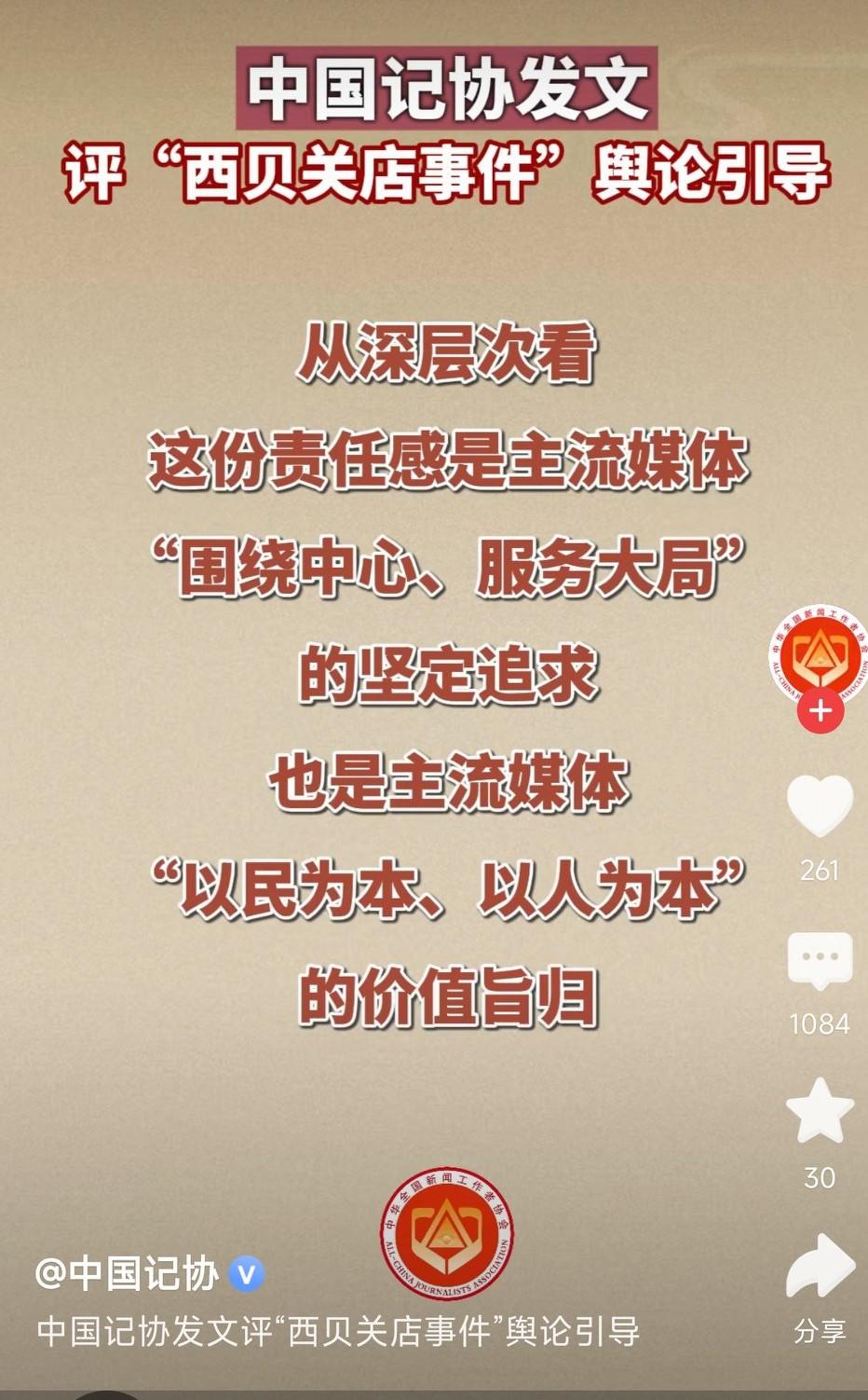中国记协发文评“西贝关店事件”舆论引导。 说实话,之前只是吃瓜,最多觉得西贝只是