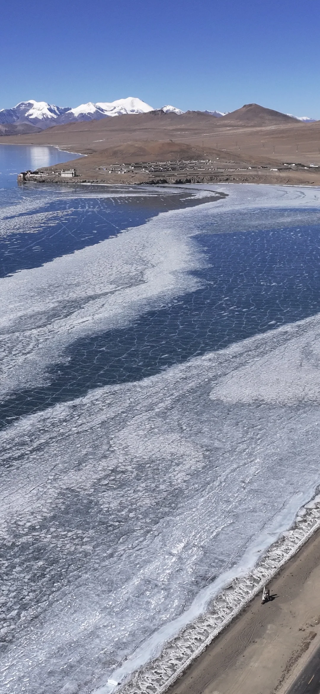 我就一天才, 现在普莫雍错观景台和北岸位置, 冰层还没有冻实, 从康马县过来的位置都还没有结冰, 只有普莫雍错南岸, 推瓦村位置, 冰己经冻实了, 可以大胆上冰, 点开图1,仔细看, 如果你有无人机, 那就升起无人机,一眼即知, 不要再和我逼逼, 为什么你去的普莫雍错啥都没有, 为什么你去的普莫雍错还没结冰, 好好想想自己的原因, 报团时为什么不喊我, 普莫雍错1天,2天有位置(日落) 来古冰川4天,5天有位置(冰川星空)
