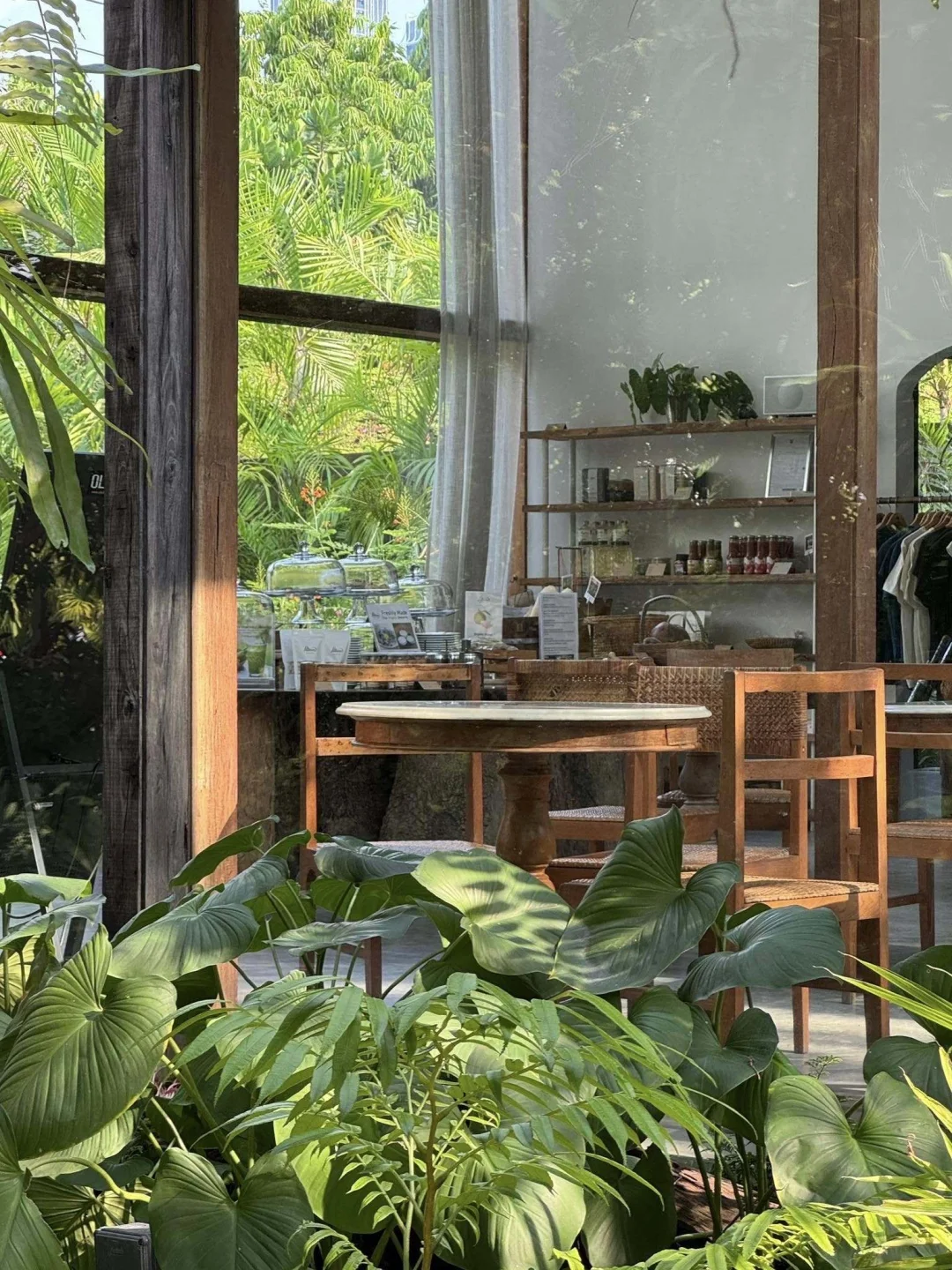 这家店就在素坤逸,隐藏在市区里的绿洲,透明的大玻璃房子被绿色植物🌳包围,满眼绿意,点一杯喝的在落地窗前坐一下午真的非常Chill!