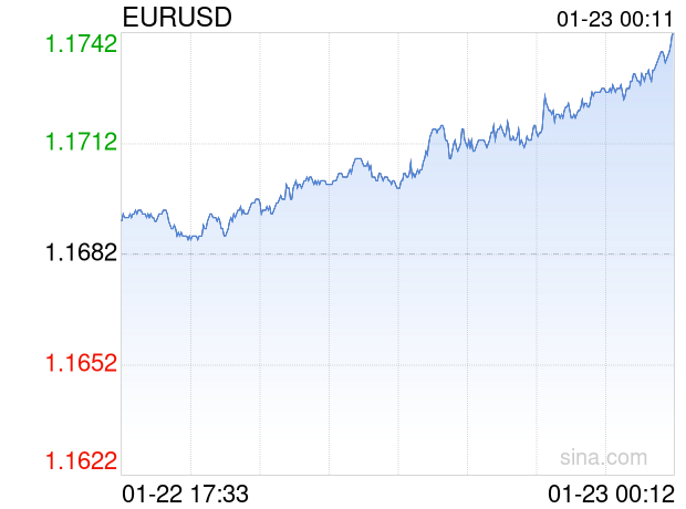 新浪外汇消息2026年01月23日,截至00时11分,外汇市场上欧元兑美元汇率突破1欧元兑换1.1742美元。涨幅为0.5136%