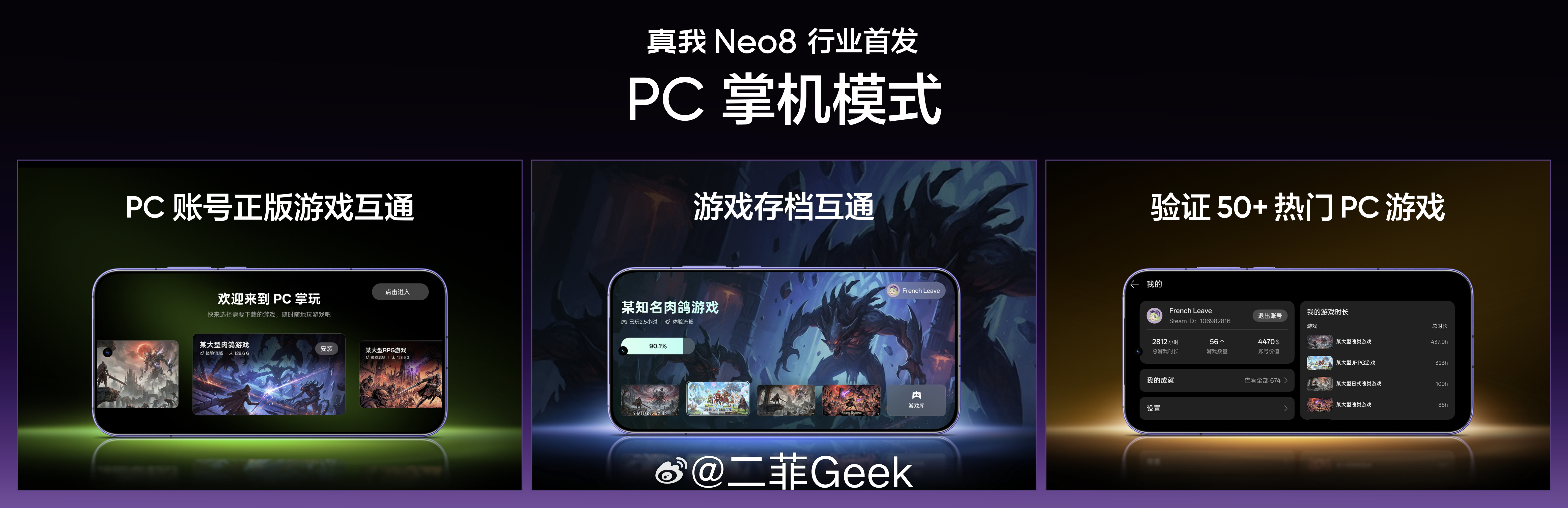 真我Neo8搭载第五代骁龙8支持主流枪战手游165帧无限满帧还有极客性能面板CPU与GPU运行频率、手机温度都能定义!行业首发PC掌机模式随时随地都能玩steam游戏了