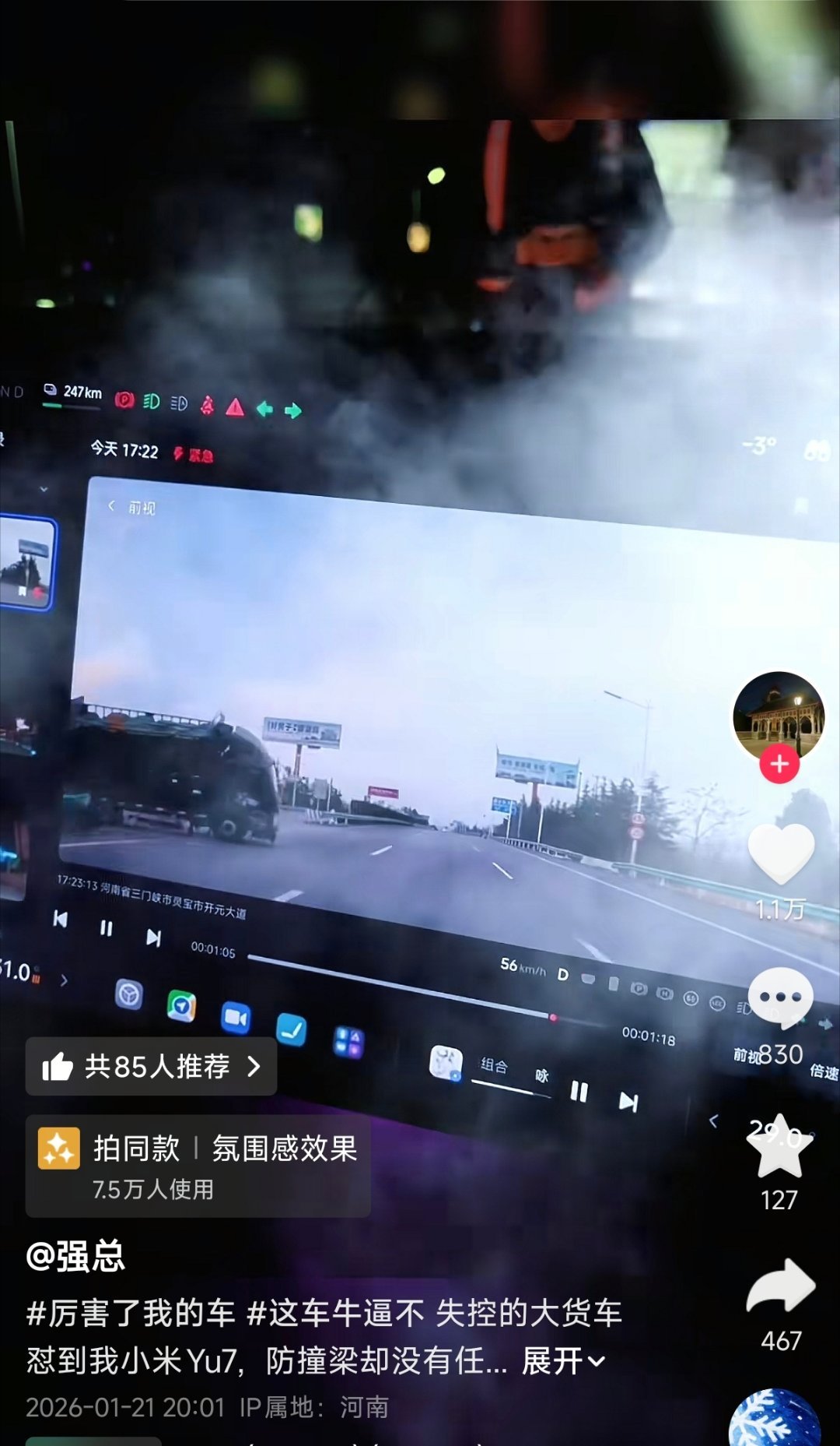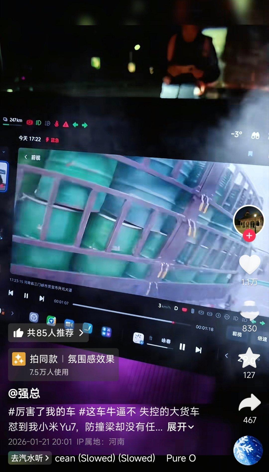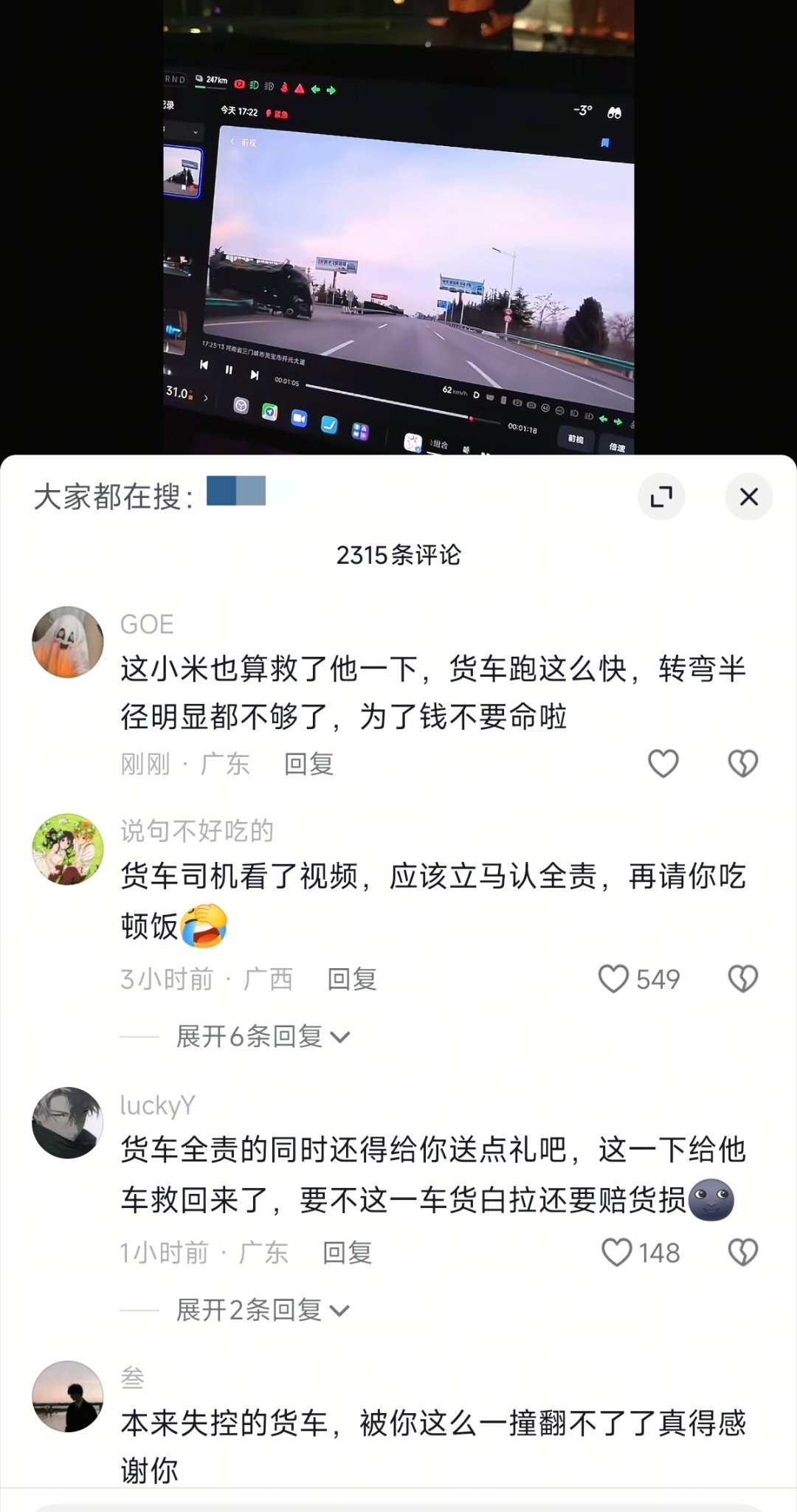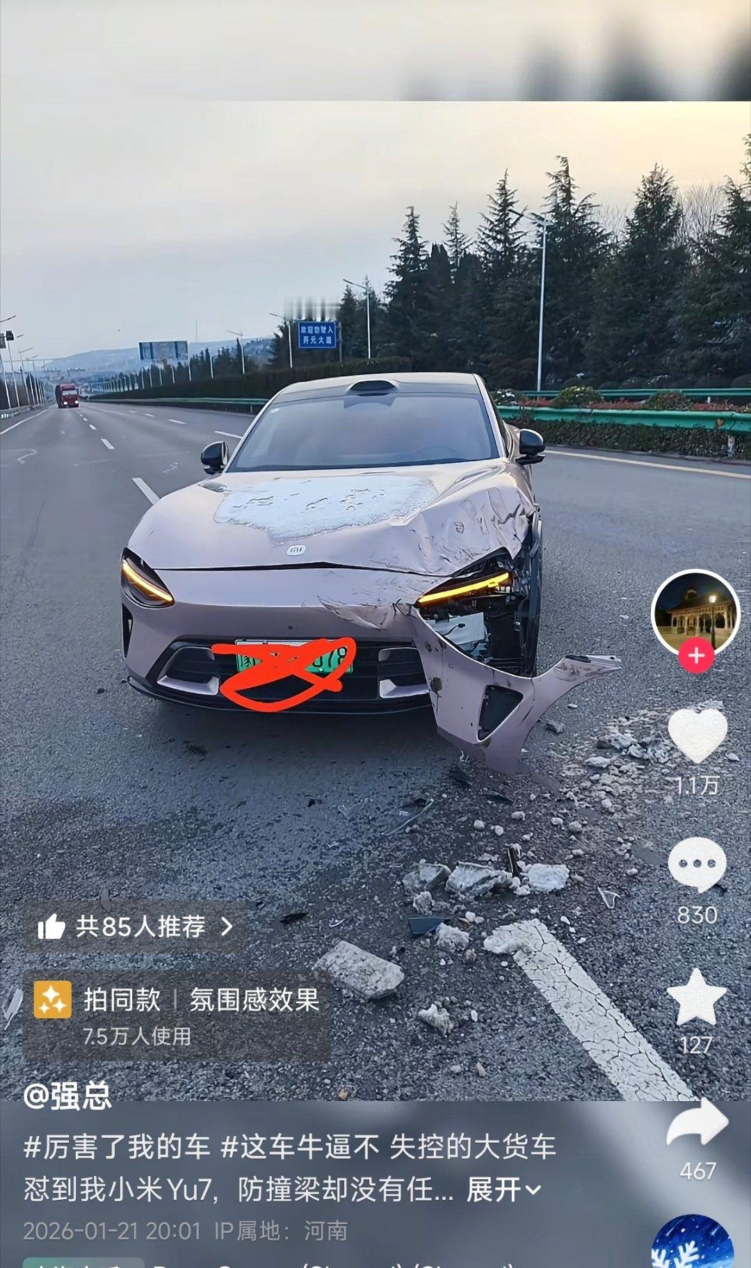 刚刚刷到一起小米YU7的事故,左前轮一侧受损,大货车全责。评论区网友都在说:如果