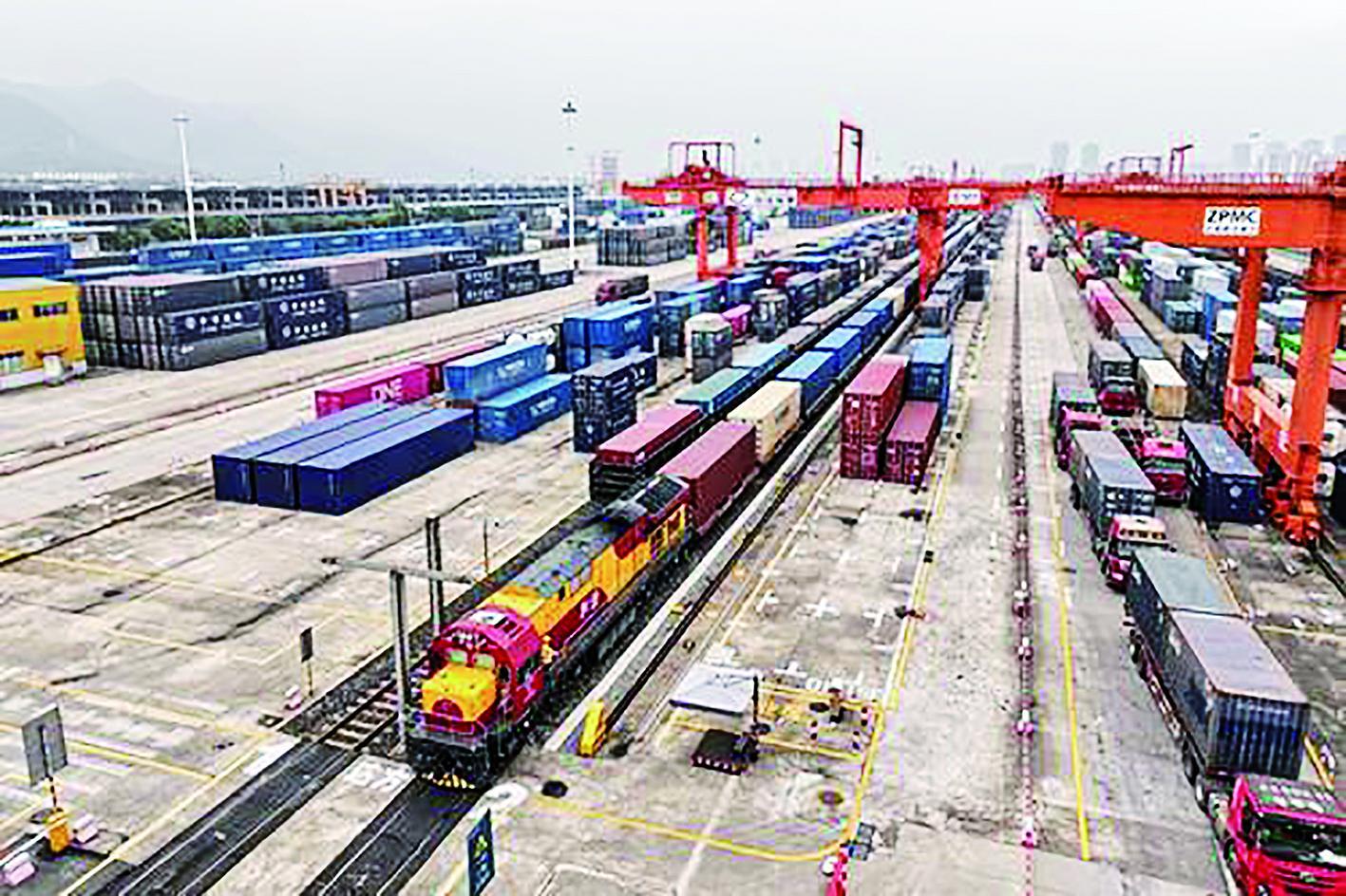 首趟“东盟快班”回程班列在沙坪坝团结村铁路集装箱中心站中转