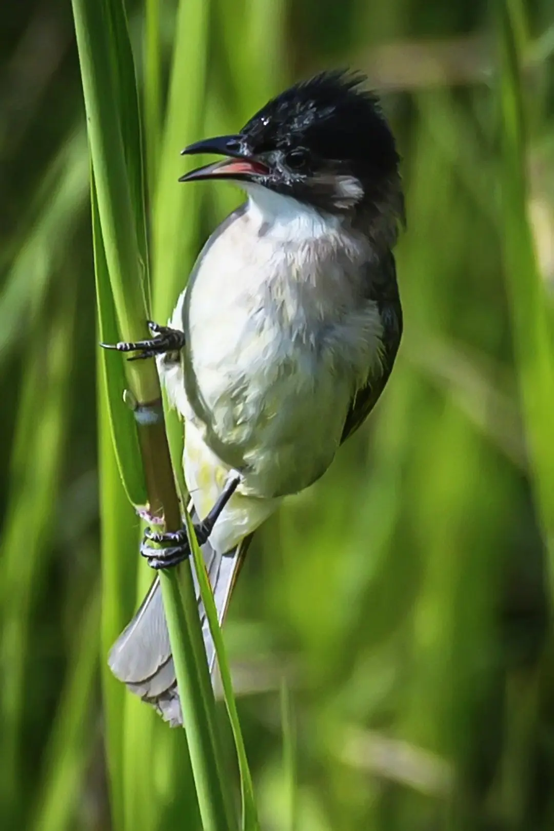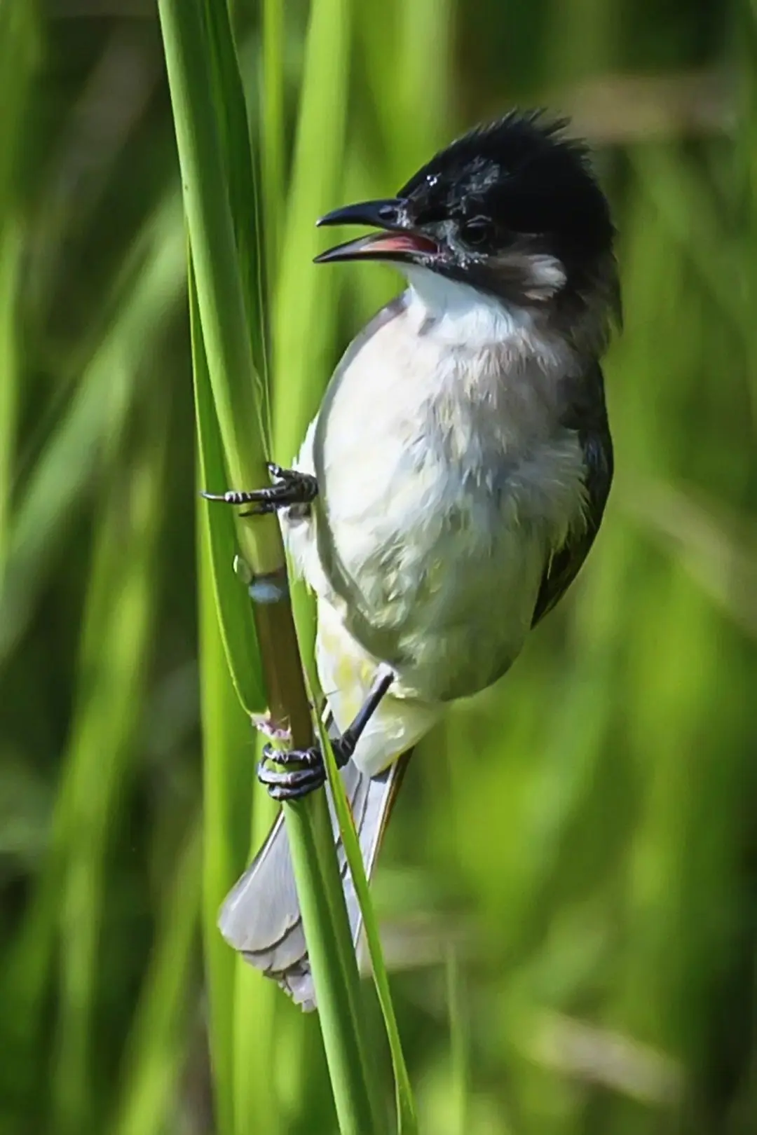 白头鹎两广亚种|常见的小型鸟类。🐦白头鹎两广亚种,是我最近在小区附近常遇到的小可爱。羽毛是那种嫩嫩的橄榄绿色,肚子白白的,头顶还有一撮黑色的羽毛,特别显眼。 它们好像一点都不怕人,经常成群结队地在树枝间跳来跳去,叽叽喳喳叫个不停,是很活泼的小家伙。有时候会停在电线上,梳理羽毛,有时候又会落在果树上啄食果实,动作又快又灵活。 这种鸟主要生活在低山丘陵、平原灌丛这些地方,我们小区附近的绿化带里就很适合它们栖息。如果想观察它们,最好是在清晨或者傍晚,这时候它们活动比较频繁。 野生鸟类观鸟自然之美