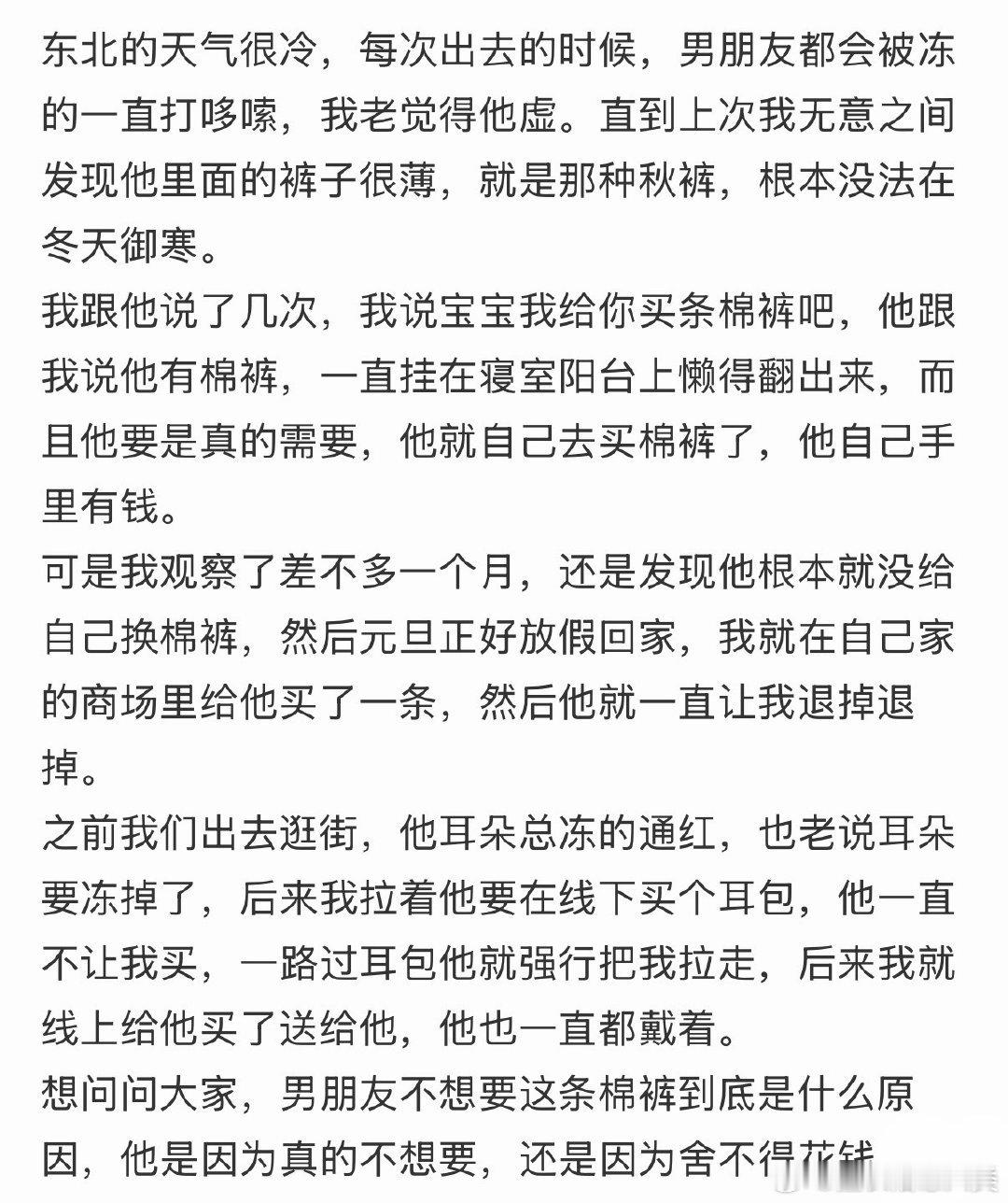 男友要求退棉裤,我买了给他却不穿。