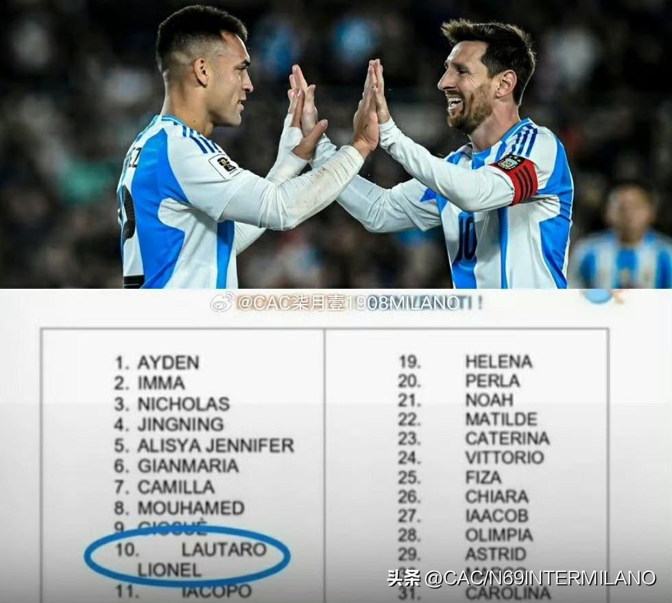 在意大利库内奥省, 有一家人给他们的儿子取名为“劳塔罗'利昂内尔”, 以此来致敬劳塔罗和梅西。 这个名字在塞尔瓦斯卡市官方出生登记册上,日期为2026年1月7日,这反映了两位阿根廷球员的影响力如何在全球超越国界,甚至在家庭生活中表现出来。 ​​​