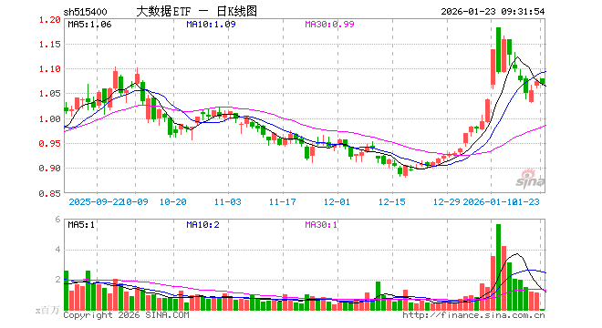1月23日,大数据ETF(515400)开盘涨0.47%,报1.079元。大数据ETF(515400)重仓股方面,科大讯飞开盘涨0.96%,中科曙光跌1.00%,浪潮信息涨0.17%,紫光股份涨0.23%,恒生电子涨0.59%,润泽科技涨0.33%,拓维信息跌0.54%,深信服跌3.23%,中国长城跌3.59%,用友网络涨0.51%。