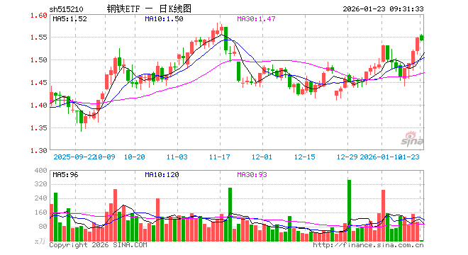 1月23日,钢铁ETF(515210)开盘涨0.32%,报1.552元。钢铁ETF(515210)重仓股方面,宝钢股份开盘涨0.28%,包钢股份涨0.00%,久立特材涨0.03%,华菱钢铁涨0.00%,中信特钢涨0.87%,大中矿业涨2.22%,南钢股份涨0.71%,太钢不锈涨0.18%,杭钢股份涨1.26%,沙钢股份跌0.84%。