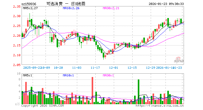 1月23日,可选消费ETF(159936)开盘涨0.04%,报2.263元。可选消费ETF(159936)重仓股方面,美的集团开盘涨0.10%,比亚迪涨0.13%,格力电器涨0.30%,三花智控跌1.73%,福耀玻璃涨0.20%,赛力斯跌0.06%,海尔智家涨0.31%,中国中免涨0.01%,上汽集团涨0.00%,拓普集团涨0.56%。