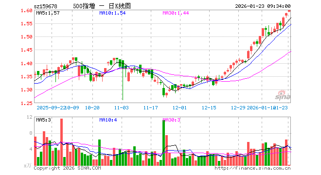 1月23日,中证500增强ETF(159678)开盘涨0.25%,报1.591元。中证500增强ETF(159678)重仓股方面,厦门钨业开盘涨0.34%,长川科技跌1.38%,赤峰黄金涨3.62%,巨人网络涨0.93%,长江证券涨0.23%,高德红外跌0.61%,兴森科技跌0.31%,江波龙跌2.66%,睿创微纳涨17.70%,生益电子涨0.02%。