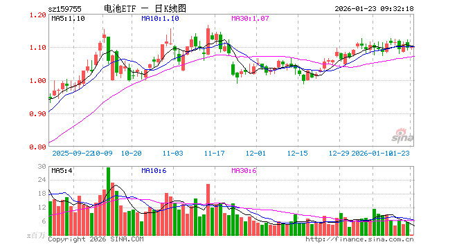 电池ETF(159755)业绩比较基准为国证新能源车电池指数收益率,管理人为广发基金管理有限公司,基金经理为罗国庆,成立(2021-06-15)以来回报为9.63%,近一个月回报为6.17%。