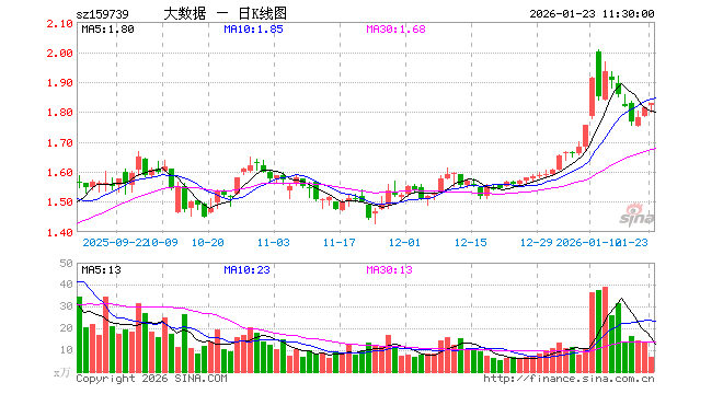 1月23日,截止午间收盘,云计算ETF鹏华(159739)涨0.83%,报1.827元,成交额1278.10万元。云计算ETF鹏华(159739)重仓股方面,科大讯飞截止午盘涨0.98%,金山办公涨4.35%,中际旭创跌6.10%,浪潮信息跌0.72%,新易盛跌6.71%,中科曙光跌1.65%,紫光股份涨0.15%,恒生电子涨1.30%,润泽科技涨2.32%,拓维信息涨0.48%。