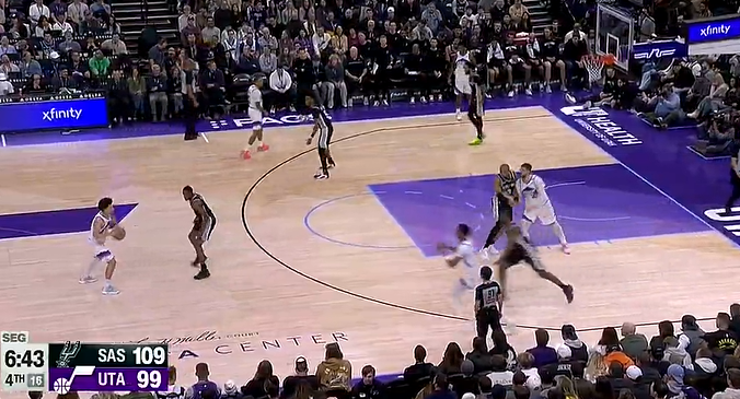 比赛第四节,福克斯、文班、卡斯尔接连命中,马刺将分差拉开到两位数。