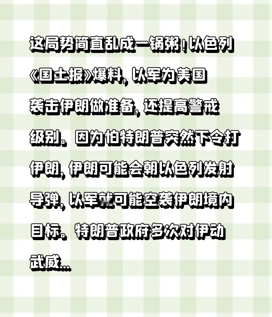这局势简直乱成一锅粥!以色列《国土报》爆料,以军为美国袭击伊朗做准备,还提高警戒