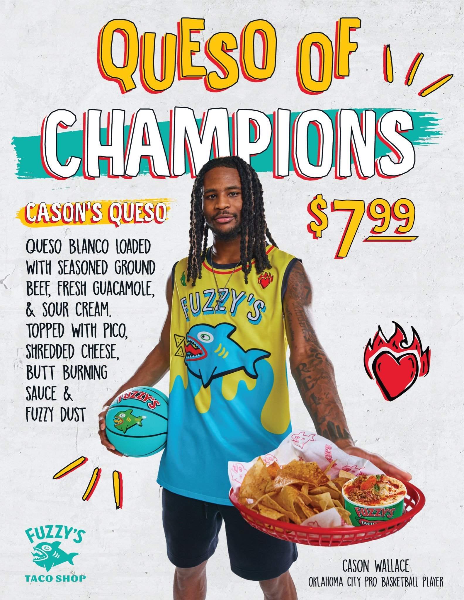 卡森华莱士与Fuzzy’s Taco店携手合作,推出了一款加料芝士酱,该单品仅在俄克拉荷马州限量供应。雷霆战胜雄鹿步行者vs雷霆雷霆