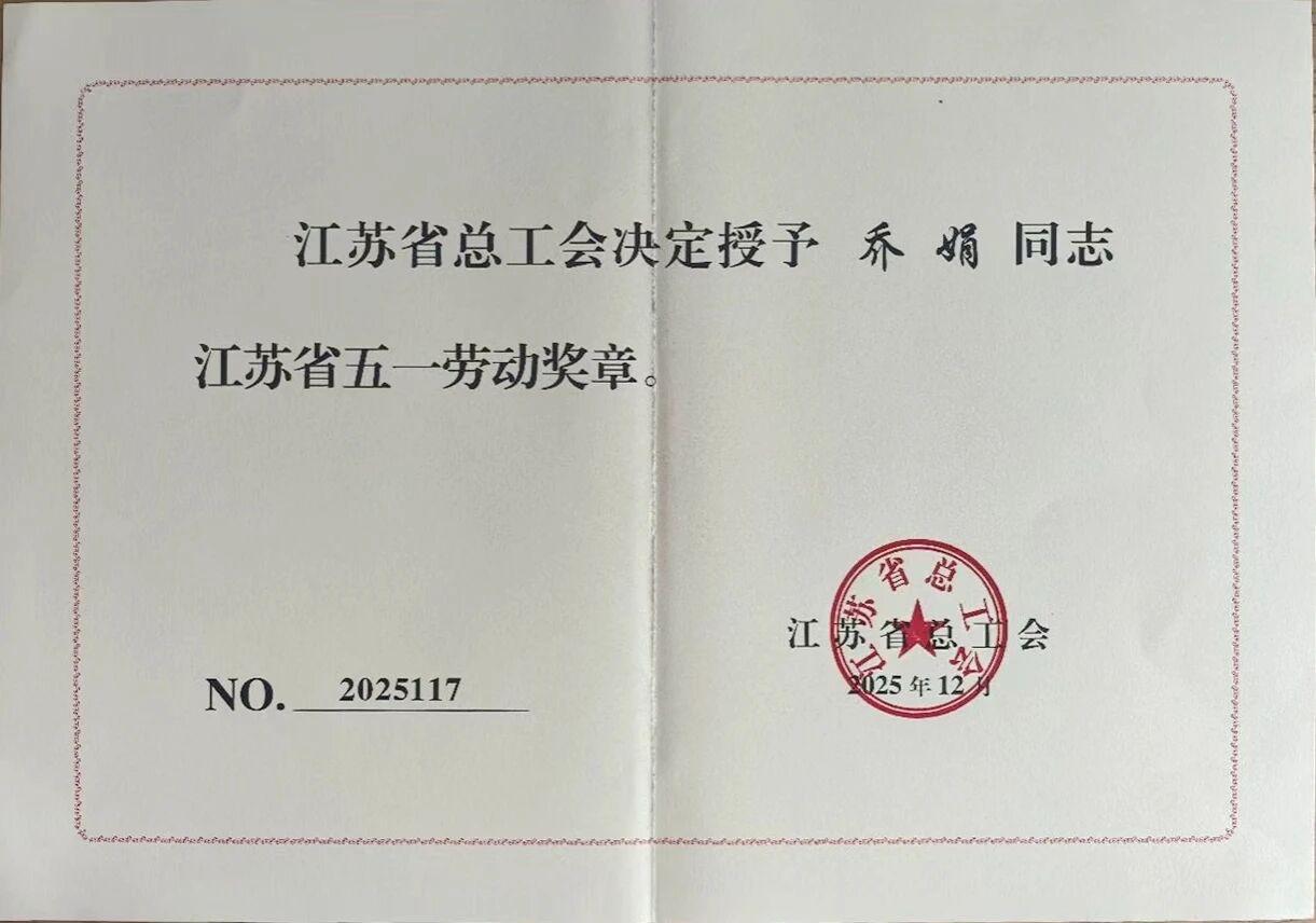 乔娟博士荣获江苏省五一劳动奖章 近日,江苏省总工会、江苏省人力资源和社会保障厅联合下发《关于表彰江苏省五一劳动奖、江苏省工人先锋号、江苏省五一巾帼标兵的决定》,徐州医科大学民盟盟员乔娟博士(徐州医科大学精神教研室主任与东方人民医院医学心理科大科主任)荣获2025年“江苏省五一劳动奖章”荣誉称号。
