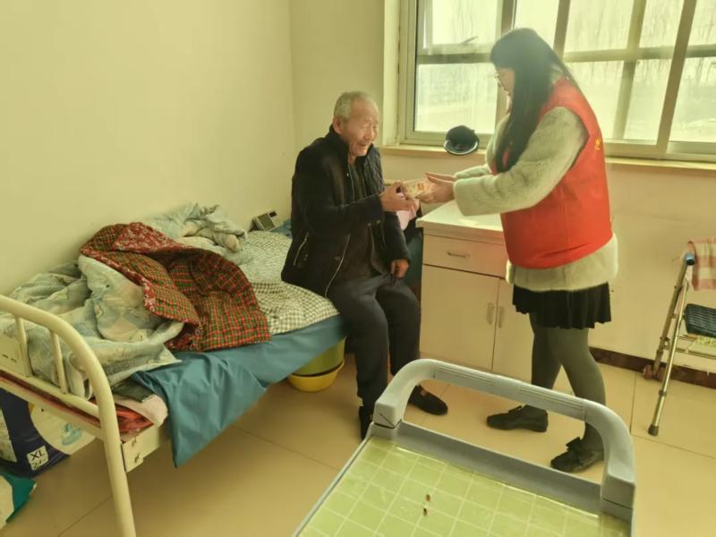 随后,志愿者与学生代表带着提前熬制的腊八粥来到漫河镇漫河村养老院。大家分工协作,将一碗碗软糯香甜的腊八粥递到老人手中,轻声叮嘱老人慢食、注意保暖。同时,志愿者与学生们围在老人身边,拉着老人的手闲话家常,细心询问老人的身体状况、饮食起居及实际需求。老人们捧着热粥,脸上洋溢着幸福的笑容,整个养老院也洋溢着温馨和谐的浓厚氛围。