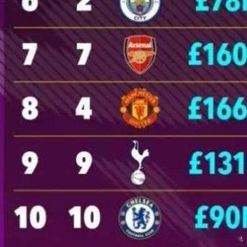 最新德勤足坛财富榜已经发布,皇萨仁排在前三,曼联跌至第八,利物浦升至第五名,英超
