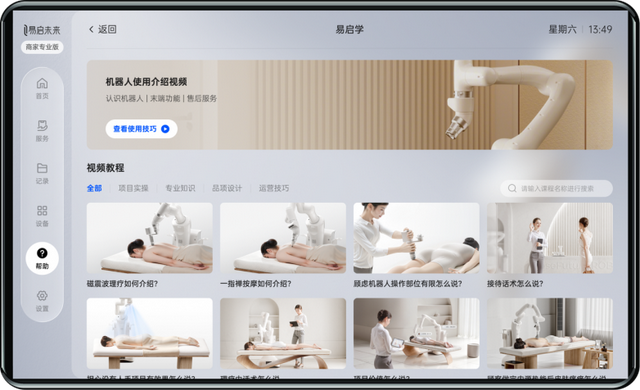 2.Pad端“易启学”栏目提供系统的视频教程与考核,助力理疗师持续成长。